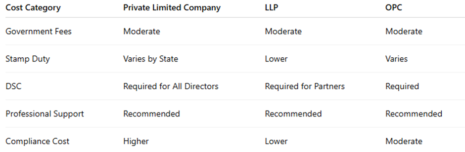 The cost of registration depends on capital, state stamp duty, and number of directors or partners. Private Limited Companies generally have slightly higher compliance effort because of detailed filings. LLPs have simpler compliance requirements, making ongoing cost lower. OPC costs are moderate because only one person manages everything. FilingPoint explains all hidden factors clearly so you choose wisely.